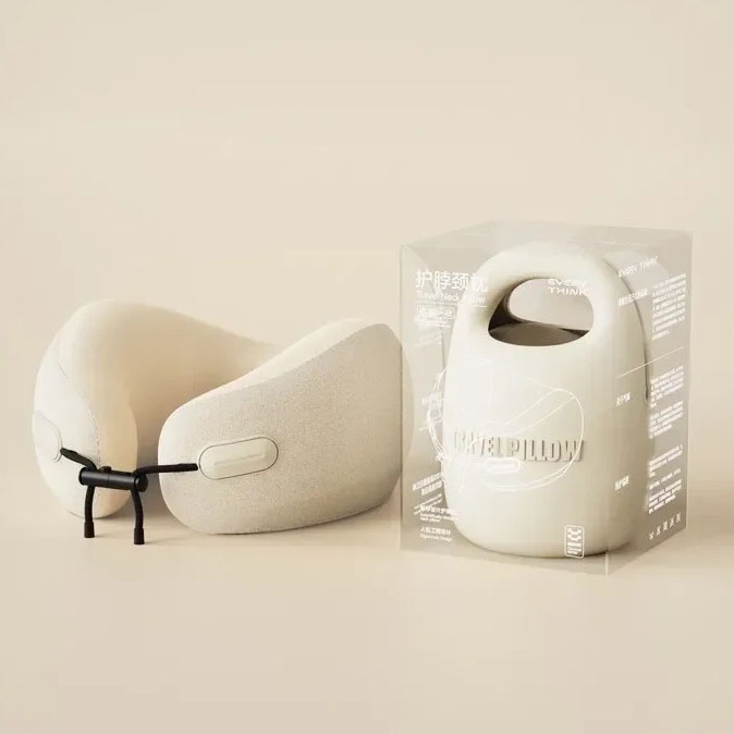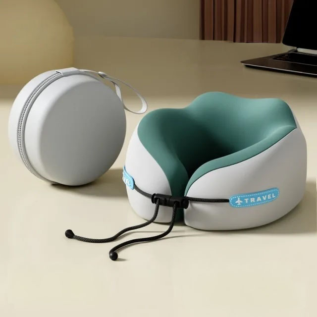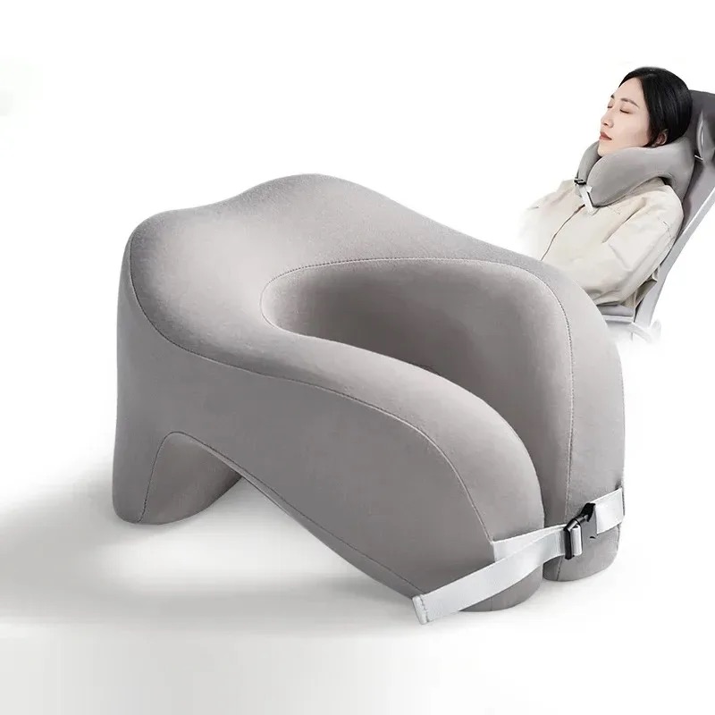 Внутри используется пенный наполнитель, который подстраивается под форму шеи и головы, обеспечивая мягкую, но устойчивую поддержку. Благодаря U-образной конструкции подушка фиксирует положение головы, помогает избежать неудобных наклонов и делает отдых в самолёте, поезде, машине или офисе более комфортным.